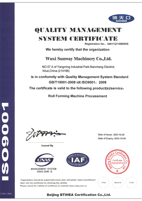 WUXI SUNWAY MACHINERY CO.,LTD is a professional manufacturer and exporter that are concerned with the design, development and production of cold roll forming machines. Our company is specialized in manufacturing different kinds of cold roll forming machines, such as color steel sheet forming machines for roof & wall, etc.